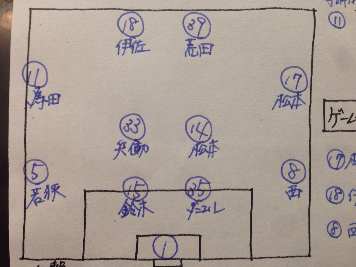 左には、前節の福岡戦の直前で関塚監督が㉖井出が復帰直前的なコメントをしていたので、今節で復帰すると予想です。