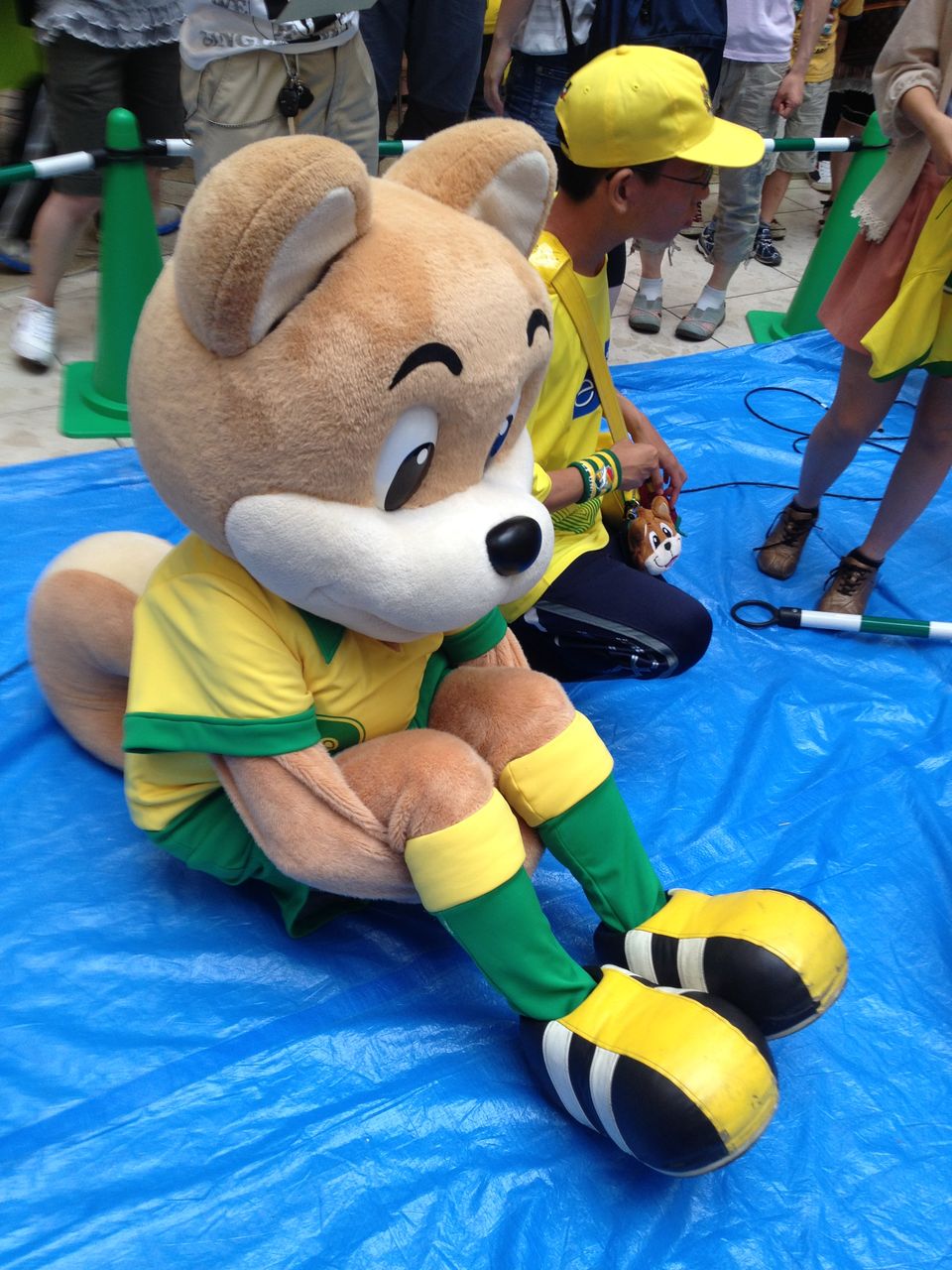 なぜ ブルーシートに体育座り?